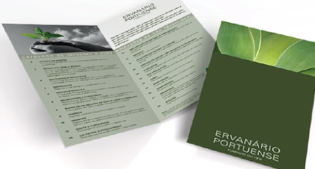 A PMD foi responsável por criar este folheto de apresentação de produtos para um Ervanário.