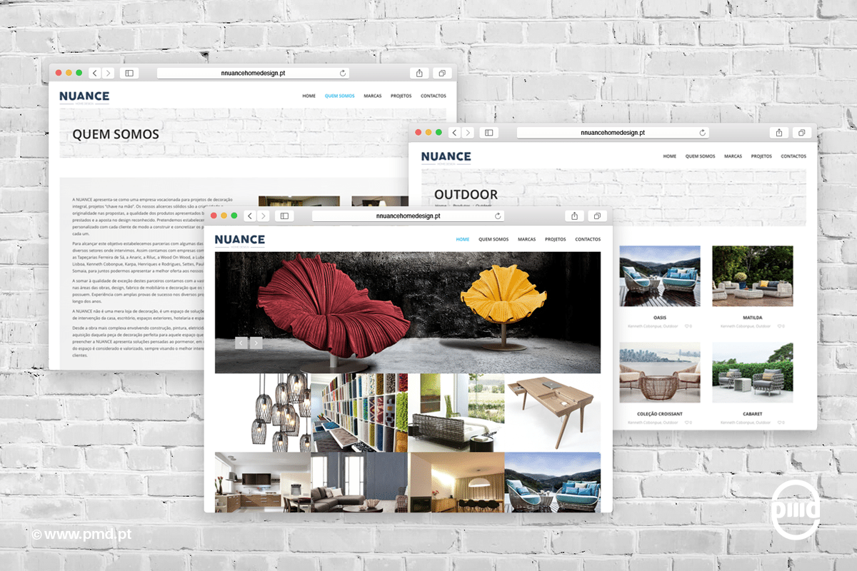 Desenvolvimento de Website para a empresa de Decoração – Nuance Home Design. O desafio foi ter um website que fosse simples de navegar, especialmente em dispositivos móveis, e que apresentasse produtos que comercializam, projetos que executam e empresas que representam.
